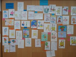 Los alumnos de dibujo han hecho una exposición de sus obras en el hall del colegio.